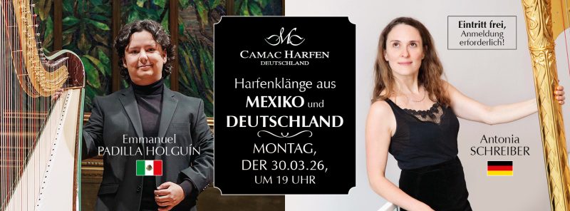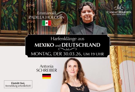 Ein außergewöhnliches Konzert mit Antonia Schreiber, 1. Solo-Harfe des Gürzenich-Orchesters Köln, und dem mexikanischen Harfenvirtuosen Emmanuel Padilla Holguín.